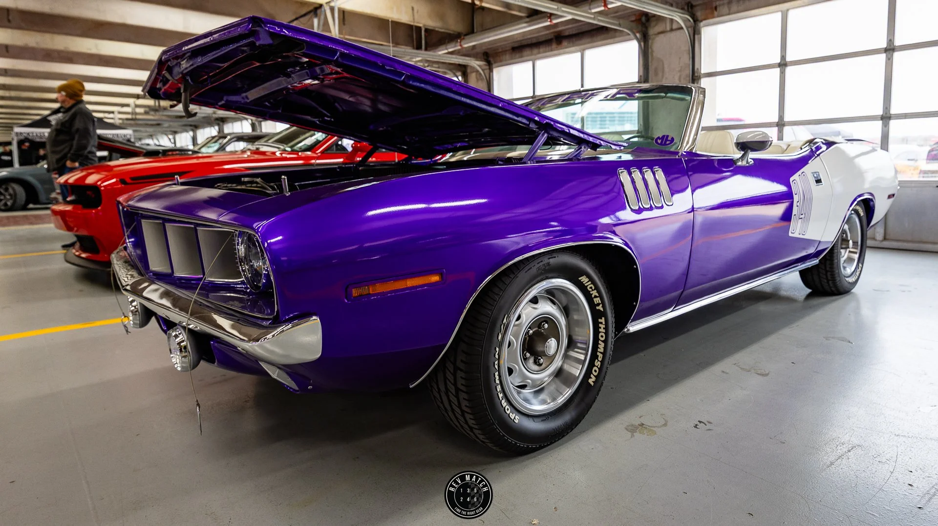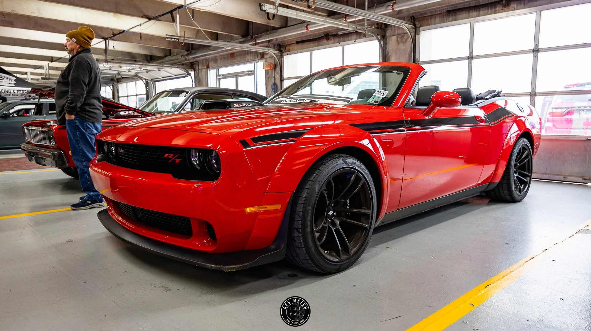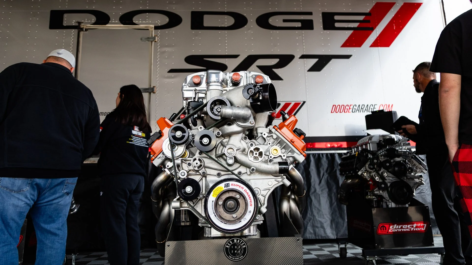 Once we arrived, it was all eyes on the new kid on the block in the White Knuckle and Pitch-Black color combo. We parked next to a 2-door full EV Charger Daytona Scat Pack, and it was pretty impressive to see how loaded our entry level R/T actually was. The area we parked was next to the Direct Connection booth which had their catalogs of engine offerings on display.
